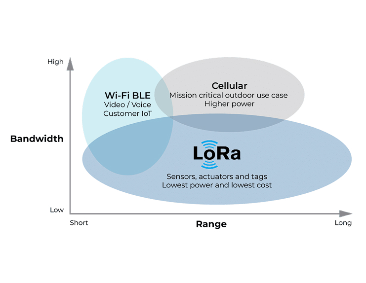 การผสาน LoRaWAN / Mesh LoRaWAN / AuraLink, LTE/5G, และดาวเทียม
